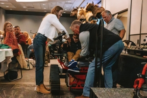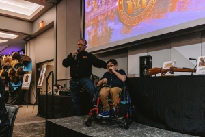 One of the most meaningful moments of the evening was the presentation of a Track Chair to a mobility-challenged young man from Nebraska through the organization’s Access Outdoors program. The program provides track chairs that allow youth with mobility challenges to experience outdoor environments that would otherwise be difficult to access.